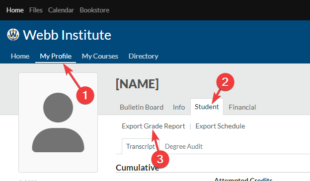 Repeat the four steps below for all semesters you have taken starting with your first semester at Webb.